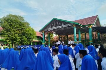 Amuntai (MTsN 5 HSU) – Kepala Madrasah Tsanawiyah Negeri (MTsN) 5 Hulu Sungai Utara (HSU) Drs. H. Rushadi, M.M melantik pengurus Organisasi Siswa Intra Madrasah (OSIM) masa bakti 2024, Senin (12/02/24) di halaman madrasah.