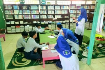 Amuntai (MTsN 5 HSU) – Siswa Madrasah Tsanawiyah Negeri 5 Hulu Sungai Utara (MTsN 5 HSU) kembali menunjukkkan kreasinya menyulap botol bekas menjadi pot bunga gantung yang indah. Hal tersebut selaras dengan program inovasi Usaha Kesehatan Sekolah (UKS) madrasah yang mendukung pencegahan pencemaran limbah plastik dengan cara daur ulang barang bekas.