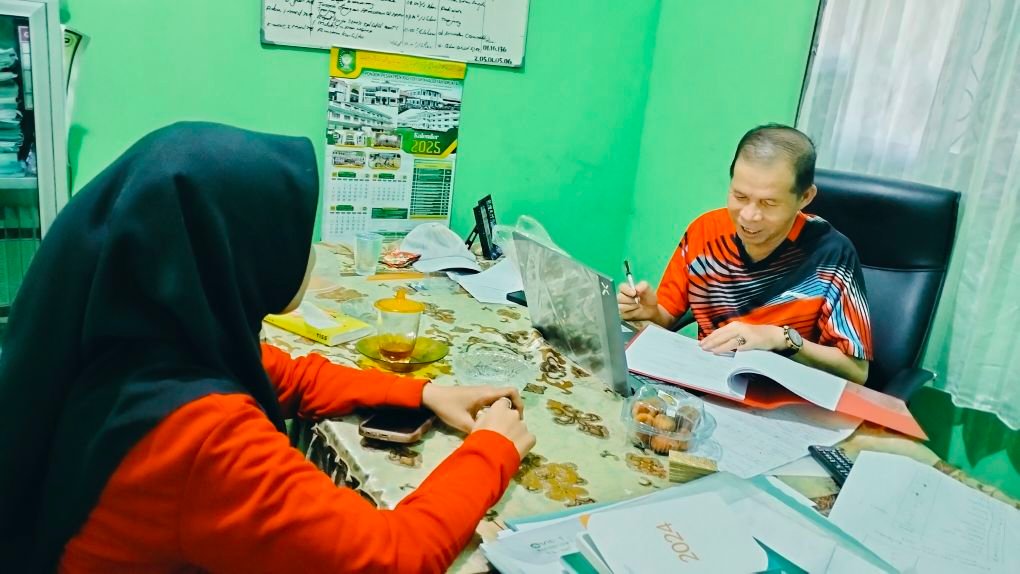 Tim Perpustakaan MTsN 1 HSU yang dipimpin oleh Ketua Perpustakaan, H. Mujiburahman, S.Ag., M.Pd., bersama staf perpustakaan, Rizka Yulianti, S.M., memaparkan desain dan konsep akhir kartu anggota perpustakaan pada Jumat pagi (19/9/2025) di ruang kerja Kepala Madrasah.