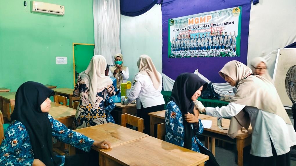 Amuntai –MTsN 1 HSU – Madrasah Tsanawiyah Negeri (MTsN) 1 Hulu Sungai Utara (HSU) mendapatkan kegiatan Bulan Imunisasi Anak Sekolah (BIAS) dengan menerima vaksinasi pencegahan kanker serviks untuk siswi kelas IX. Kegiatan ini dilaksanakan pada hari Rabu, (24/9/2025), di ruang multimedia madrasah.