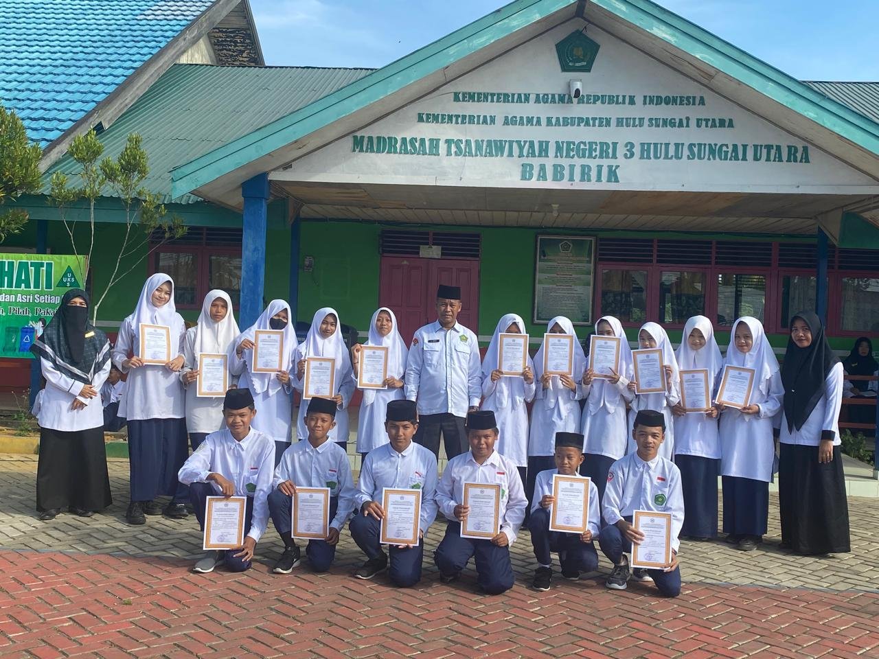 “Pada hari ini, Senin 29 September 2025, saya selaku Kepala MTsN 3 HSU resmi membubarkan Kader Kesehatan Remaja tahun ajaran 2024/2025. Terima kasih atas pengabdian dan kontribusi yang telah diberikan. Semoga amal kebaikan kalian semua mendapatkan ganjaran yang berlipat ganda dari Allah SWT,” ungkap H. Ismit, S.Pd.I., MM dalam sambutannya.