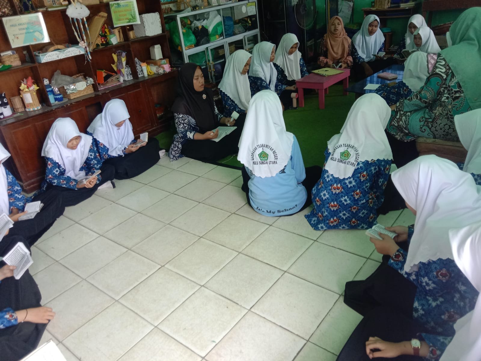 Amuntai (MTsN 5 HSU) – Madrasah Tsanawiyah Negeri 5 Hulu Sungai Utara (MTsN 5 HSU) terus menghidupkan suasana bernuansa islami di lingkungan madrasah dengan berbagai kegiatan keagamaan. Salah satunya adalah pembiasaan bagi siswi yang berhalangan melaksanakan salat berjamaah untuk mengikuti kegiatan zikir bersama. Program ini rutin dilaksanakan setiap hari, terutama pada waktu-waktu ibadah berjamaah di madrasah. Kamis (02/10/2025)