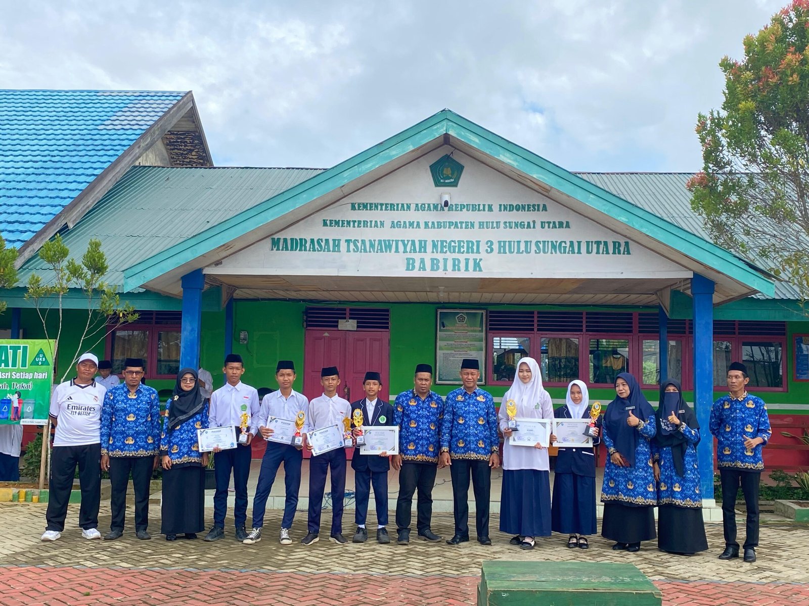 Babirik (MTsN 3 HSU) – Siswa-siswi MTsN 3 Hulu Sungai Utara kembali menorehkan prestasi membanggakan pada ajang HUT ke-20 SMAN 1 Danau Panggang. Berbagai penghargaan berhasil diraih, di antaranya Siti Aisyah meraih Juara III Pidato Bahasa Inggris, Syamsurrahman menyabet Juara I Menyanyi Solo Putra, Maysa memperoleh Juara II Menyanyi Solo Putri, serta tim futsal MTsN 3 HSU yang sukses membawa pulang Juara II. Selain itu, Wildan dinobatkan sebagai Kiper Terbaik dan Akbar sebagai Pemain Terbaik.