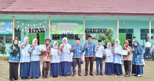 Amuntai (MTsN 1 HSU) – Kepala Madrasah Tsanawiyah Negeri (MTsN) 1 Hulu Sungai Utara (HSU), Mujiburrahman, S.Ag., M.Pd., menyerahkan sertifikat dan medali kepada sembilan siswa berprestasi yang berhasil meraih 21 medali dalam dua ajang olimpiade tingkat nasional, Senin (10/11/2025). Penyerahan penghargaan dilaksanakan di halaman madrasah usai upacara peringatan Hari Pahlawan 2025.