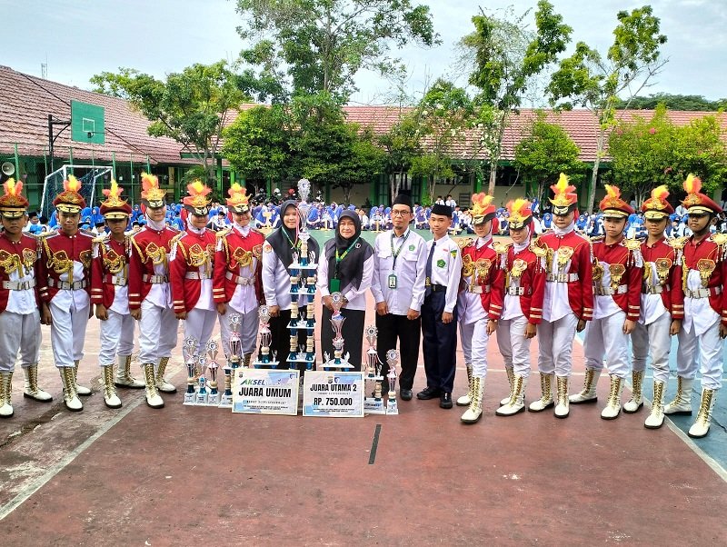Amuntai (MTsN 2 HSU) – Madrasah Tsanawiyah Negeri (MTsN) 2 Hulu Sungai Utara (HSU) menyerahkan tropi, penghargaan dan uang pembinaan kepada siswa yang telah berhasil meraih prestasi meraih juara umum Lomba Peratura Baris Berbaris (LPBB) dan Kreasi Senam Lalu Lintas (KSLL) tahun 2025 tingkat pelajar SLTP (SMP/MTs) se-kabupaten HSU, Senin (10/11/25) di halaman utama madrasah.