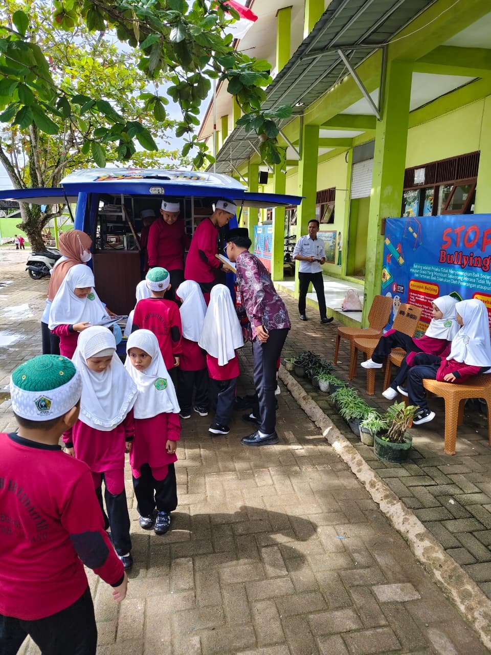Banjang (MI Integral Al-Ukhuwwah) — Suasana ceria tampak menyelimuti halaman MI Integral Al-Ukhuwah pada Rabu pagi 19 November 2025, saat mobil perpustakaan keliling hadir menyapa para siswa. Kegiatan rutin dari layanan perpustakaan daerah ini memberikan kesempatan bagi siswa untuk mengenal ragam buku secara langsung, sekaligus menumbuhkan minat baca sejak dini.