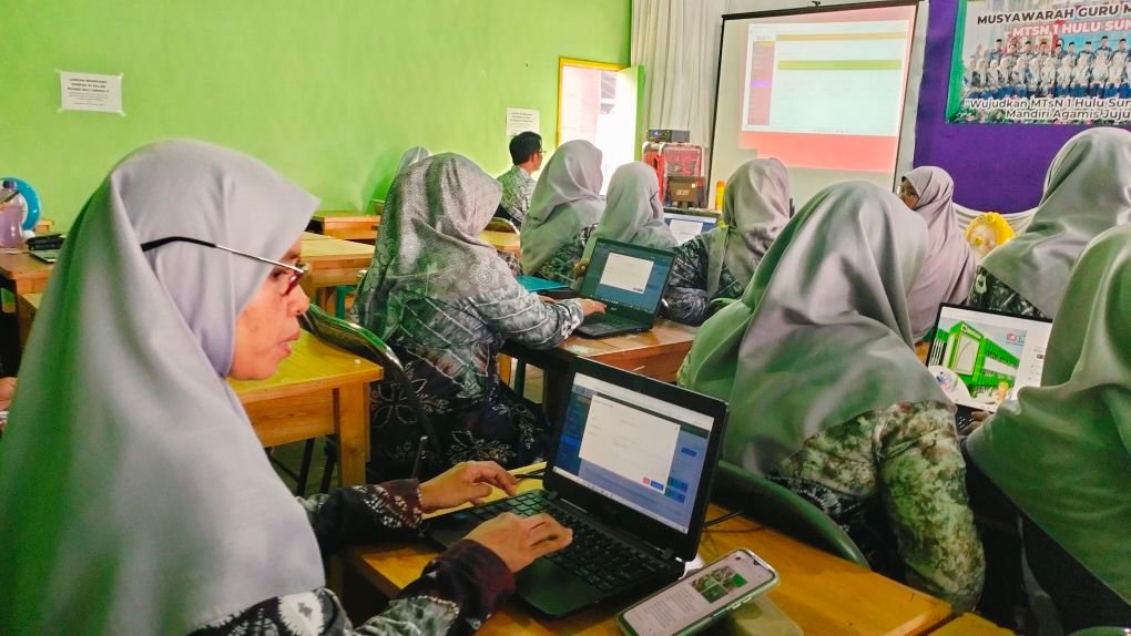 Amuntai (MTsN 1 HSU) –Madrasah Tsanawiyah Negeri (MTsN) 1 Hulu Sungai Utara (HSU) menggelar kegiatan bimbingan pengisian nilai raport Projek Penguatan Profil Pelajar Pancasila dan Profil Pelajar Rahmatan lil Alamin (P5PPRA) melalui laman Rapor Digital Madrasah (RDM), Kamis (20/11/2025) sore. Kegiatan yang diikuti 12 wali kelas dari tingkat VII, VIII, dan IX ini berlangsung di ruang multimedia madrasah setelah salat Asar.