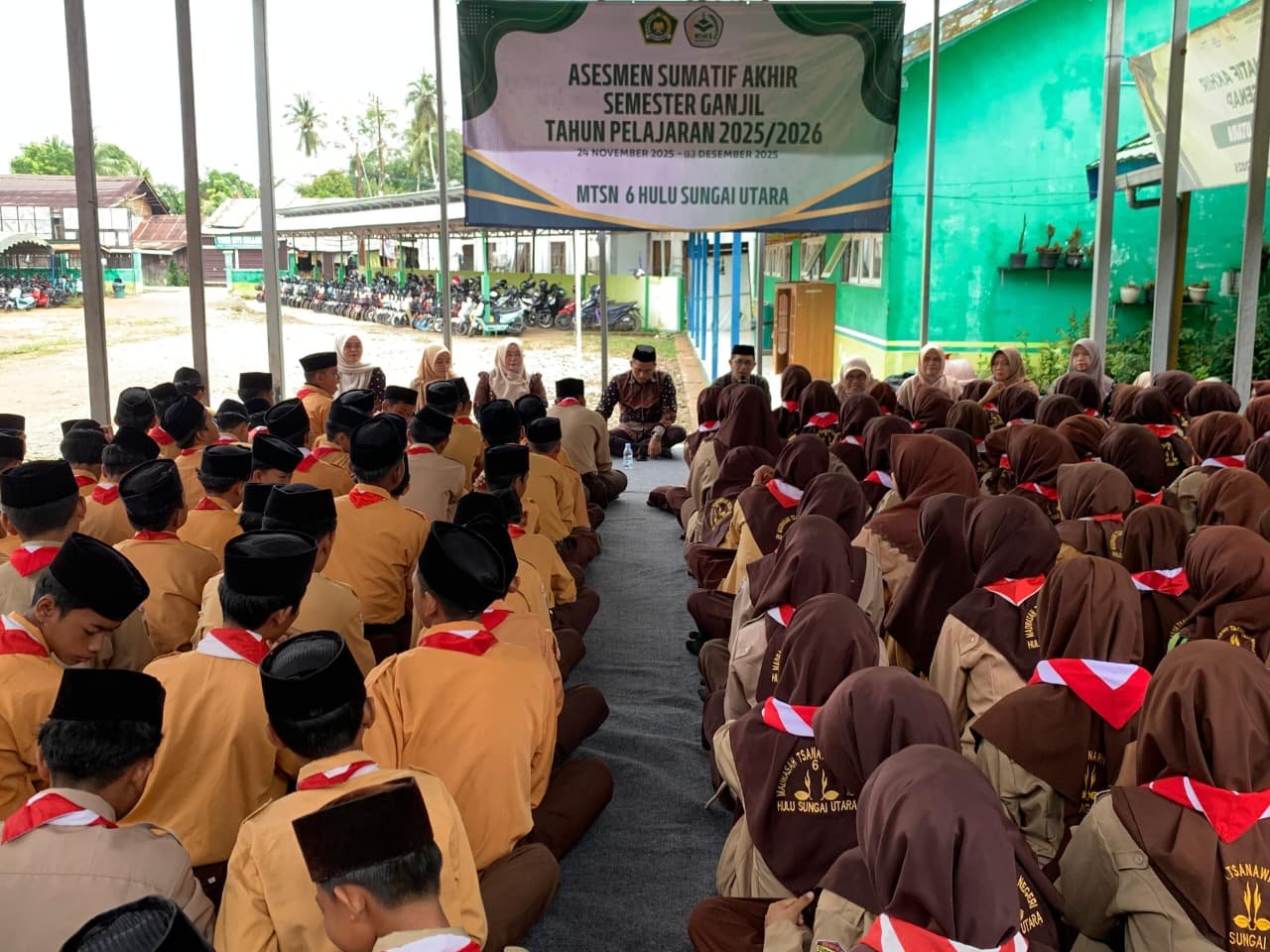 Amuntai (MTsN 6 HSU) – Pembukaan Asesmen Sumatif Akhir Semester (ASAS) Ganjil Madrasah Tsanawiyah Negeri (MTsN) 6 Hulu Sungai Utara (HSU) diadakan secara sederhana di Pendopo Madrasah. Kepala MTsN 6 HSU, Muhammad Ridha, S.Ag., M.A membuka kegiatan secara resmi Pembukaan ASAS Tahun Ajaran 2025/2026 berbasis Android menggunakan aplikasi Exam Browser, Kamis (21/11/25)