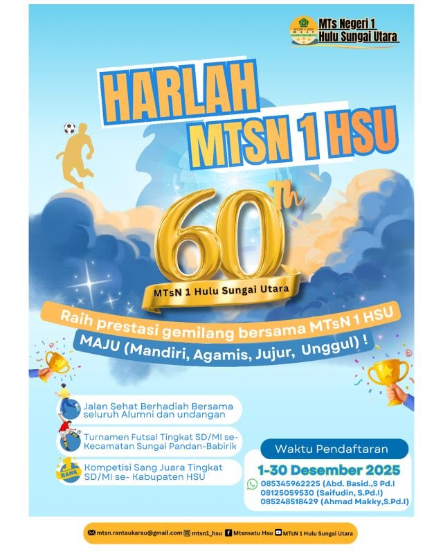 Amuntai (MTsN 1 HSU) – Madrasah Tsanawiyah Negeri (MTsN) 1 Hulu Sungai Utara (HSU) resmi menggaungkan peringatan Hari Lahir (Harlah) […]