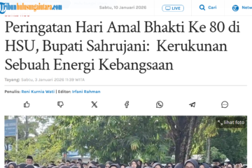 Peringatan Hari Amal Bhakti Ke 80 di HSU, Bupati Sahrujani: Kerukunan Sebuah Energi Kebangsaan January 10, 2026January 10, 2026 Berita Media