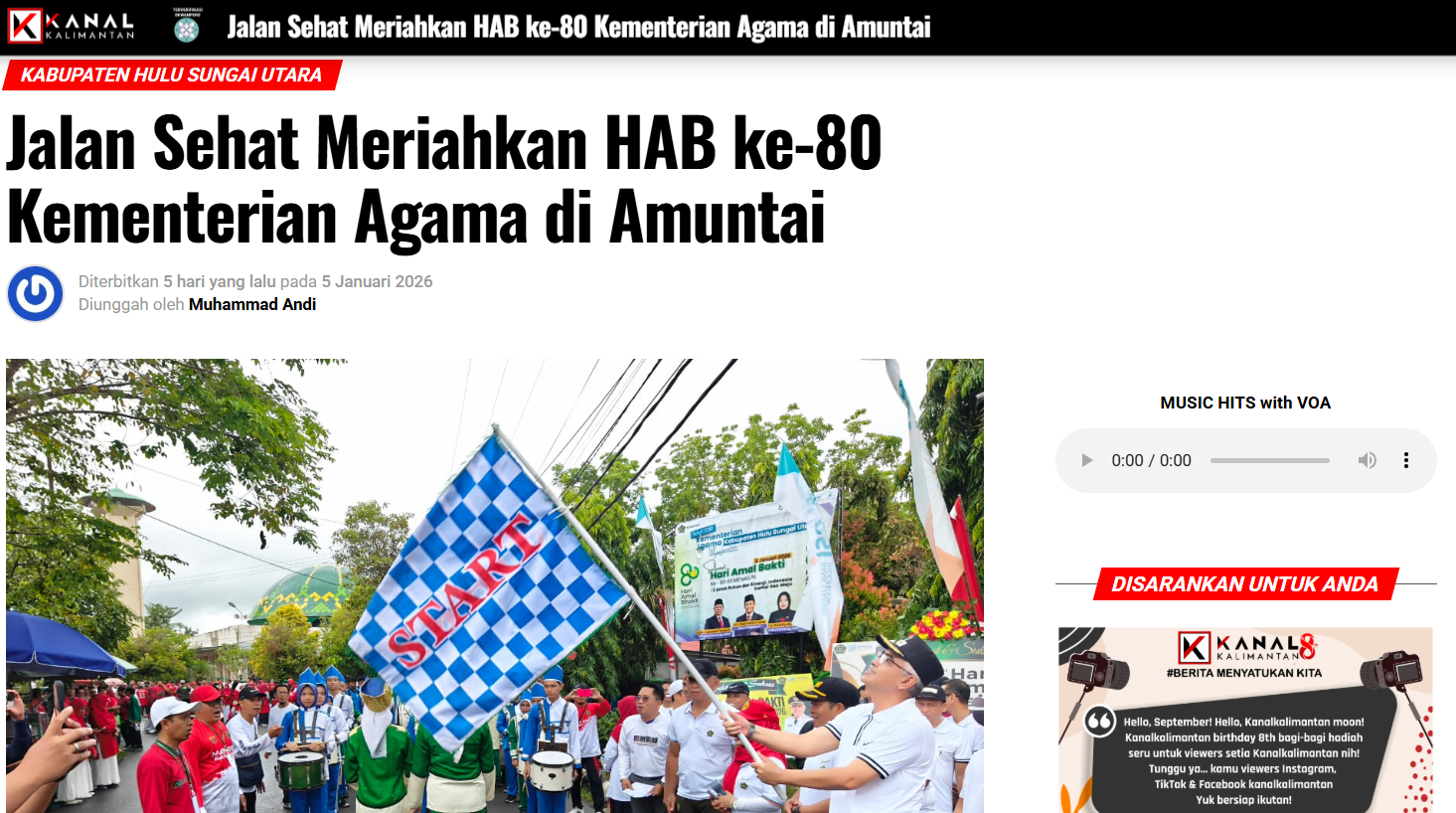 Berita Media Jalan Sehat Meriahkan HAB ke-80 Kementerian Agama di Amuntai kemenaghulusungaiutara January 10, 2026January 10, 20261 min readWrite a Comment on Jalan Sehat Meriahkan HAB ke-80 Kementerian Agama di Amuntai Jalan Sehat Meriahkan HAB ke-80 Kementerian Agama di Amuntai Telah Dibaca : 59