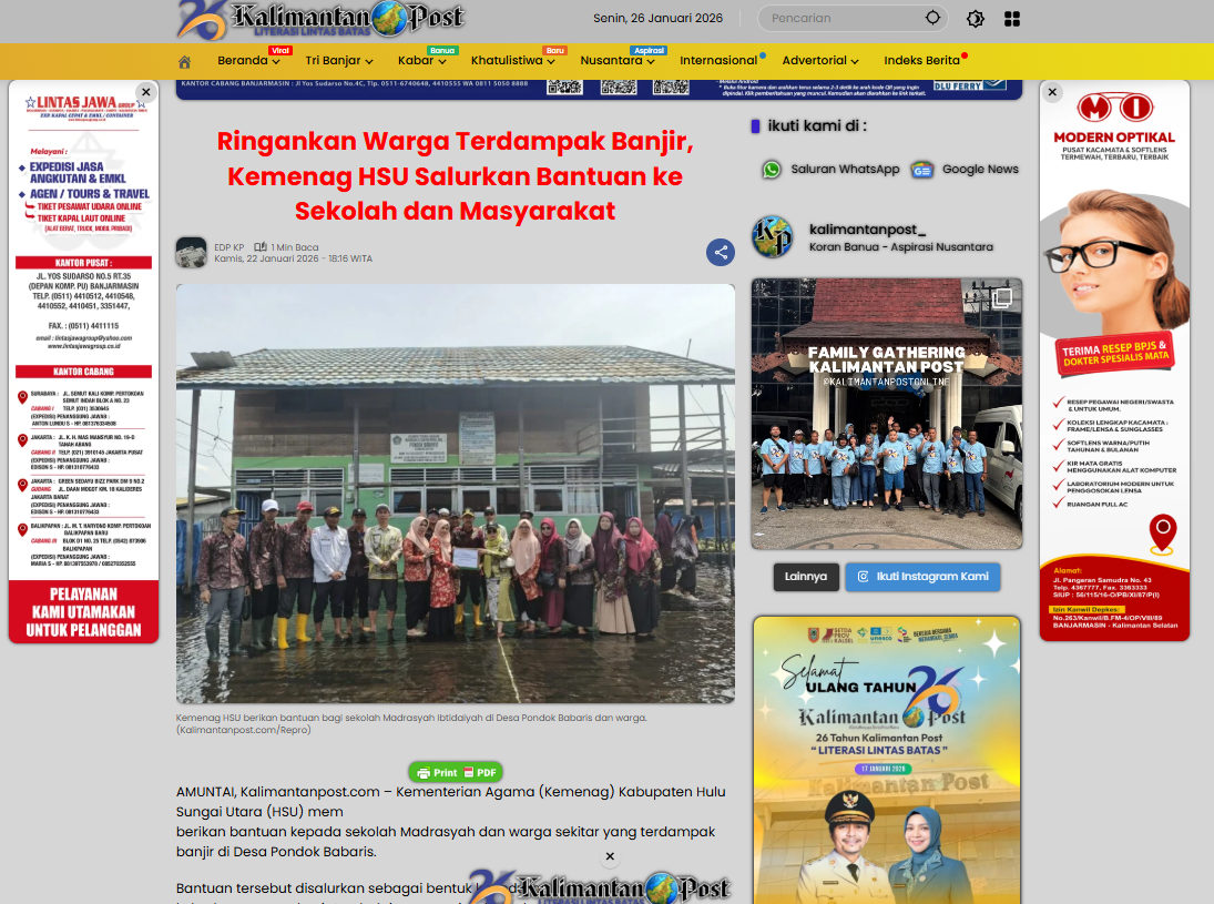 Berita Media Ringankan Warga Terdampak Banjir, Kemenag HSU Salurkan Bantuan ke Sekolah dan Masyarakat Januar Sastra January 26, 2026January 26, 20261 min readWrite a Comment on Ringankan Warga Terdampak Banjir, Kemenag HSU Salurkan Bantuan ke Sekolah dan Masyarakat Ringankan Warga Terdampak Banjir, Kemenag HSU Salurkan Bantuan ke Sekolah dan Masyarakat Telah Dibaca : 26