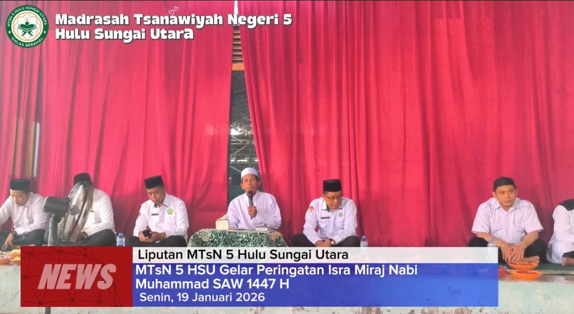 Berita Video MTsN 5 HSU Laksanakan Peringatan Isra Miraj Nabi Muhammad SAW 1447 H kemenaghulusungaiutara January 27, 2026January 28, 20261 min readWrite a Comment on MTsN 5 HSU Laksanakan Peringatan Isra Miraj Nabi Muhammad SAW 1447 H Telah Dibaca : 15