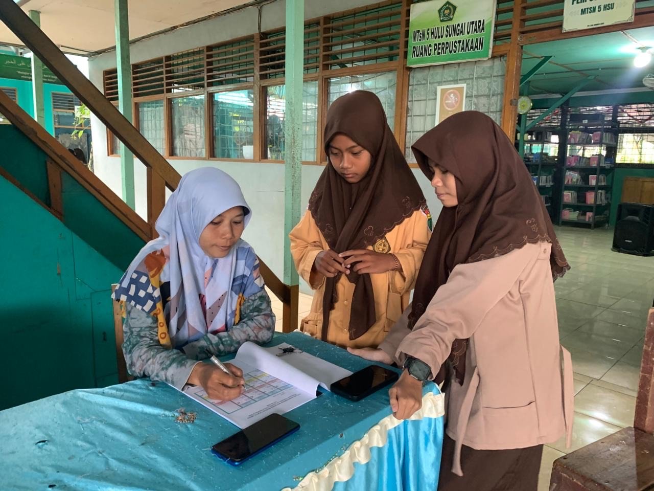 Wakamad Kesiswaan MTsN 5 HSU, Saidatul Husna menyampaikan bahwa pendataan kehadiran siswa menjadi perhatian utama agar pelaksanaan program berjalan efektif.