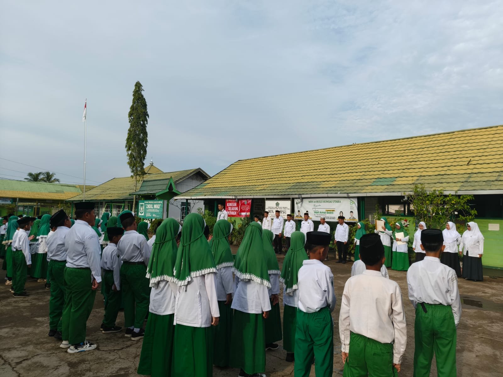Apel pagi berlangsung dengan tertib dan khidmat. Seluruh peserta didik mengikuti kegiatan dengan disiplin dan menyimak amanat yang disampaikan oleh kepala madrasah.