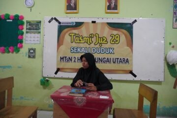 Amuntai (MTsN 6 HSU) – Puncak perayaan milad Madrasah Tsanawiyah Negeri (MTsN) 6 Hulu Sungai Utara (HSU) berlangsung meriah melalui kegiatan jalan santai yang menjadi sorotan utama seluruh rangkaian acara. Kegiatan ini diikuti oleh Siswa-siswi kelas 5 dan 6 Sekolah Dasar (SD)/Madrasah Ibtidaiyah (MI) se-Kecamatan Amuntai Utara, siswa MTsN 6 HSU, guru serta tenaga kependidikan yang turut memeriahkan suasana kebersamaan di lingkungan madrasah. Rabu (11/02/26) Lapangan MTsN 6 HSU.