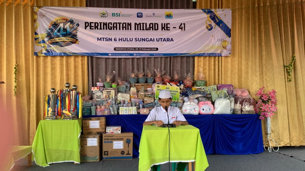 Amuntai (MTsN 6 HSU) – Dalam rangka menumbuhkan generasi yang cinta terhadap Al Qur’an, Madrasah Tsanawiyah Negeri (MTsN) 6 Hulu Sungai Utara (HSU) menggelar lomba tartil yang digelar pada hari Selasa (10/02/26) yang bertempat di Pendopo MTsN 6 HSU.