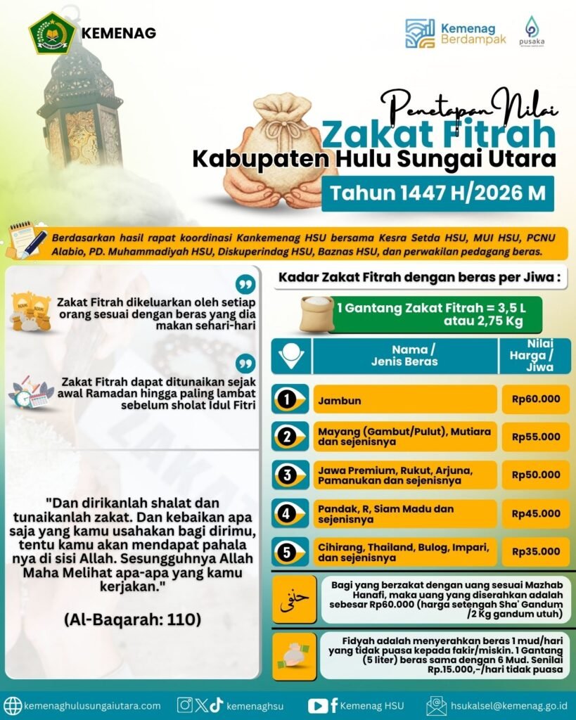 Nilai Zakat Fitrah Kab. Hulu Sungai Utara Tahun 1447 H/2026 M