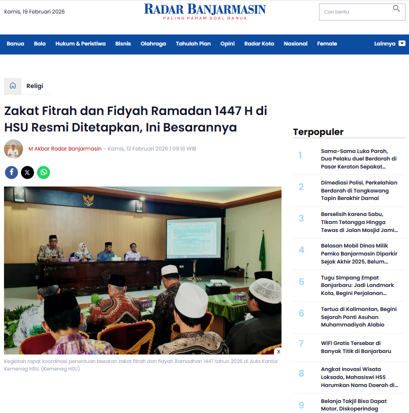 Berita Media Zakat Fitrah dan Fidyah Ramadan 1447 H di HSU Resmi Ditetapkan, Ini Besarannya kemenaghulusungaiutara February 19, 2026February 19, 20261 min readWrite a Comment on Zakat Fitrah dan Fidyah Ramadan 1447 H di HSU Resmi Ditetapkan, Ini Besarannya Telah Dibaca : 13