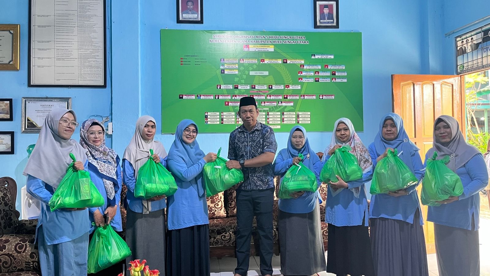 Amuntai (MTsN 5 HSU) — MTsN 5 Hulu Sungai Utara menyalurkan Paket Ramadan kepada seluruh Pendidik dan Tenaga Kependidikan (PTK) sebagai bentuk apresiasi atas kinerja dan dedikasi dalam menjalankan tugas di lingkungan madrasah. Jum’at (20/02/26).