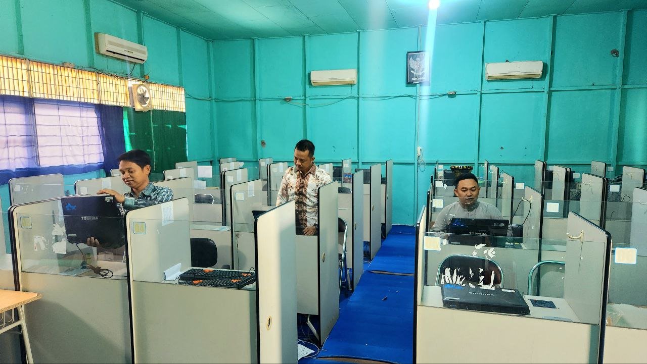 Pengecekan dilakukan oleh guru penanggung jawab laboratorium komputer bersama dua teknisi MTsN 5 HSU. Lebih dari 20 unit laptop diperiksa secara menyeluruh untuk memastikan seluruh perangkat dalam kondisi siap pakai. Pemeriksaan mencakup pengecekan perangkat keras, kelengkapan aplikasi pendukung ujian, dan daya tahan baterai.