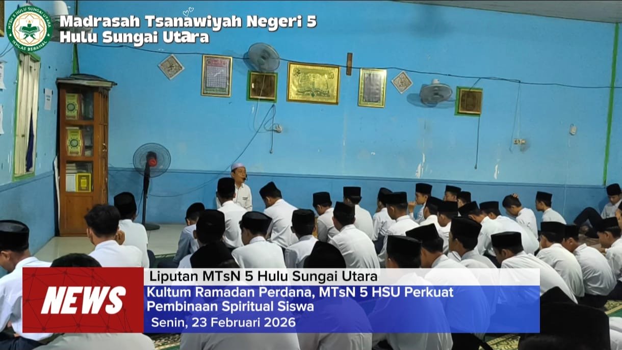 Berita Video Kultum Ramadhan Perdana, MTsN 5 HSU Perkuat Pembinaan Spiritual Siswa kemenaghulusungaiutara February 23, 2026February 24, 20261 min readWrite a Comment on Kultum Ramadhan Perdana, MTsN 5 HSU Perkuat Pembinaan Spiritual Siswa Telah Dibaca : 20