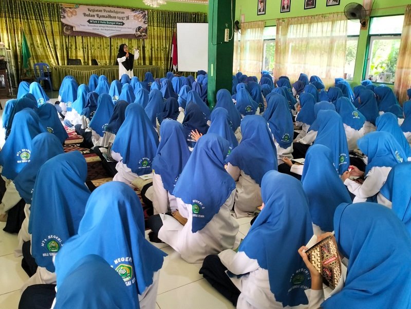 Amuntai (MTsN 2 HSU) – Tadarus Ramadhan, Pembimbing Al Qur’an Madrasah Tsanawiyh Negeri (MTsN) 2 Hulu Sungai Utara (HSU) Ilmun Rahmah mengatakan akan mendapatkan pahala lebih (berlipat).