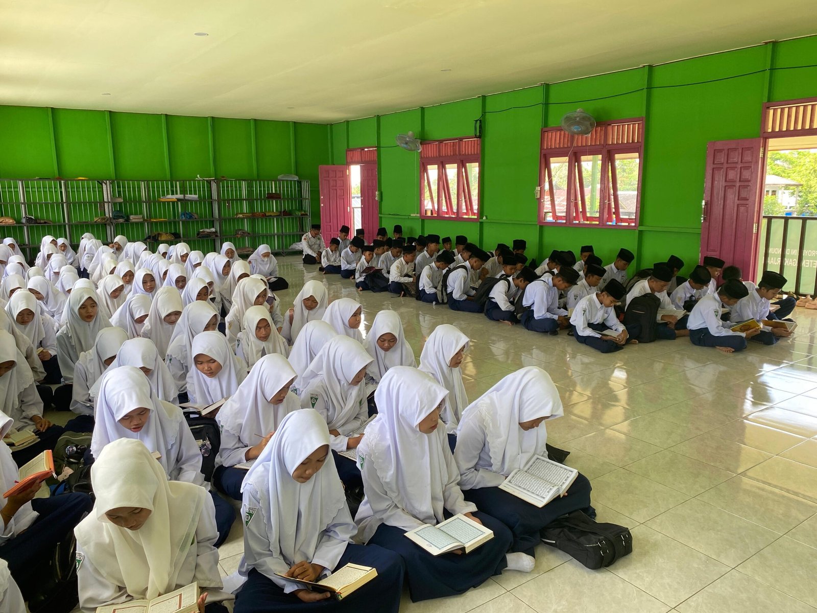 Meskipun tadarus telah menjadi program rutin yang dilaksanakan sebelum Ramadan, pada bulan suci ini kegiatan dilakukan dengan suasana yang lebih khidmat dan terstruktur. Pembacaan ayat suci Al-Qur’an dipimpin secara bergantian oleh siswa, sementara guru membimbing agar bacaan sesuai kaidah tajwid dan makhraj yang benar.
